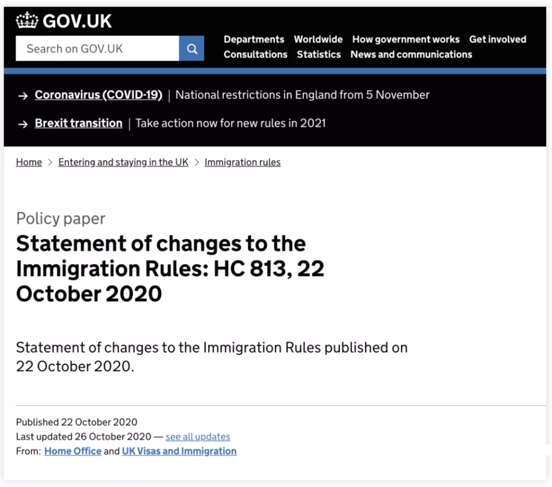 近日,英國移民局終于發布了最新修訂的移民政策法案,這是2020年里第五次修訂該法案。