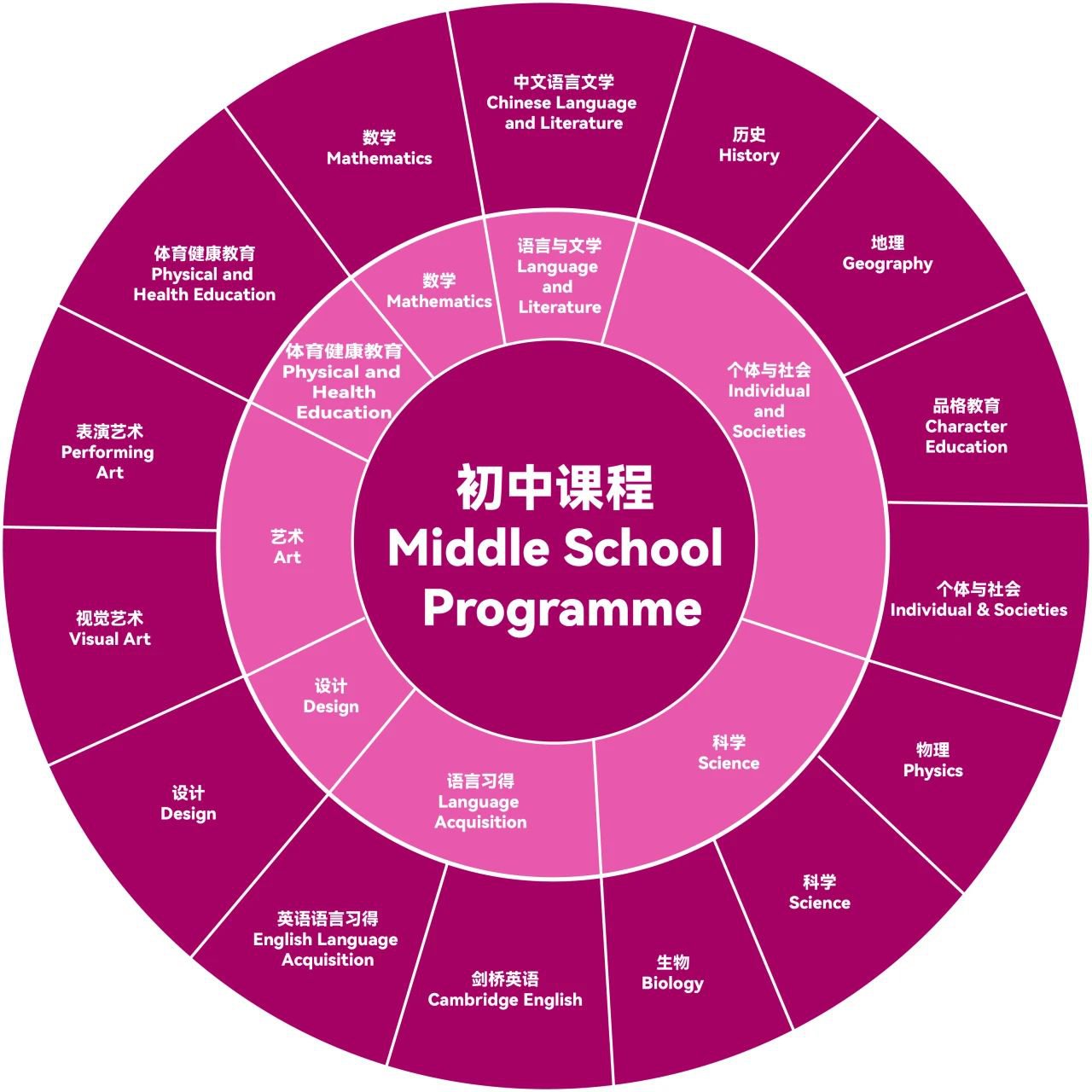 初中部以國家課程標(biāo)準(zhǔn)體系作為堅實(shí)基礎(chǔ),融合IB MYP框架,為課程內(nèi)容增加了學(xué)術(shù)深度與拓展寬度,外教或雙語教師全英文或雙語授課占超70%,注重培養(yǎng)學(xué)生的成長型思維和全球視野。