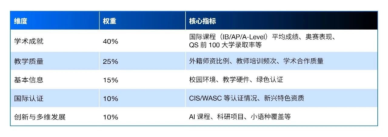 2025年6月10日,2025福布斯中國國際化學校評選結果正式發布。評選核心圍繞五大維度——學術成就、教學質量、基本信息、國際認證、創新與多維發展,通過40個量化指標,對全國3000余學校學部進行綜合評估。