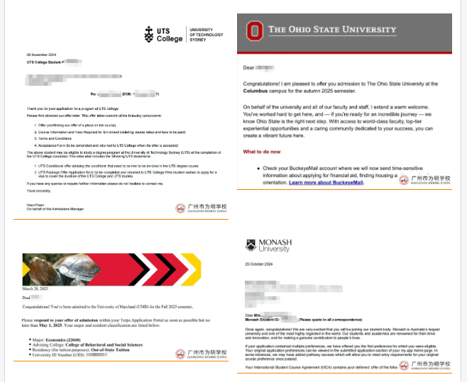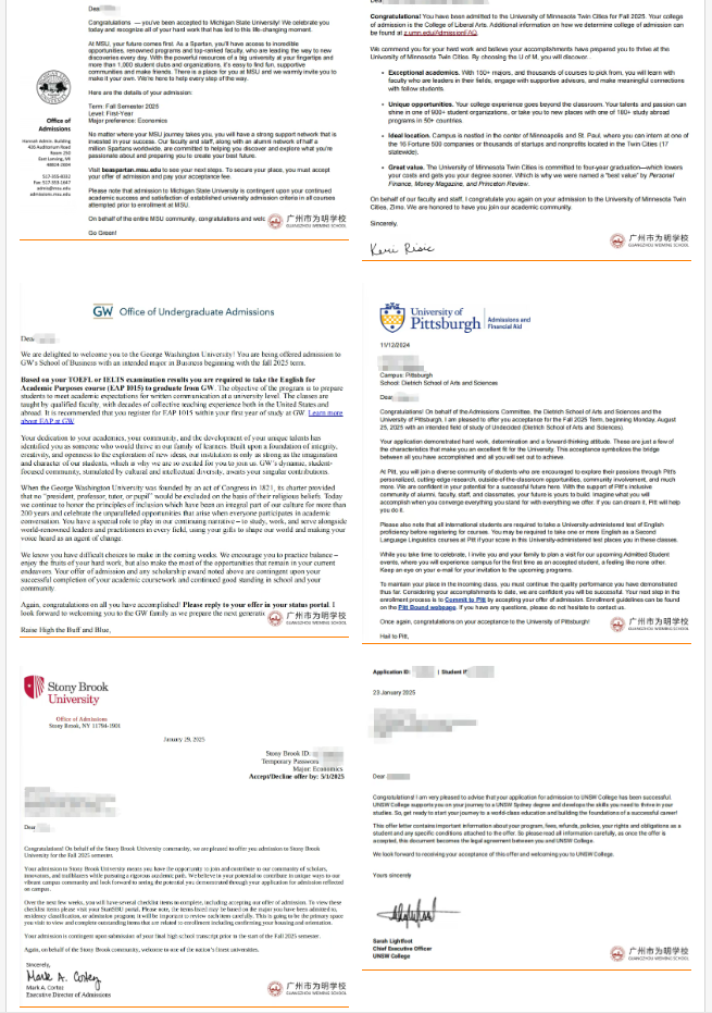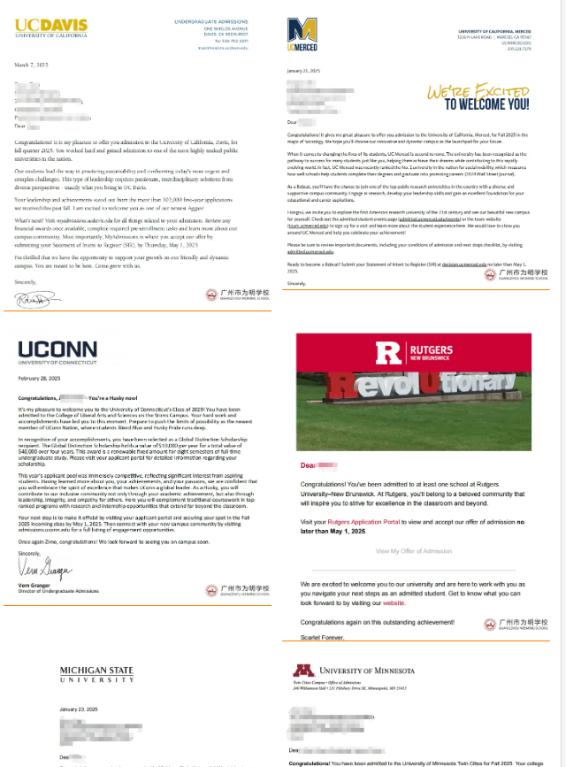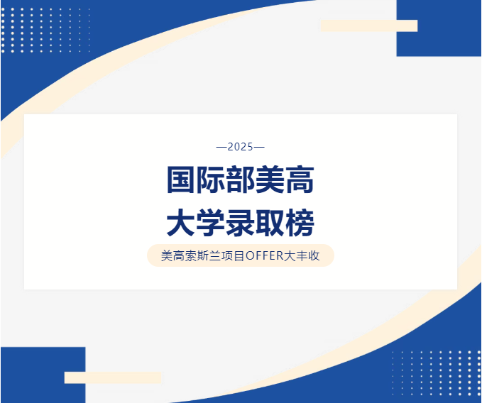 在2025申請季,國際部美高索斯蘭項目學子憑借自身的不懈努力與卓越才華,成功斬獲美加、英澳多所知名大學錄取通知。2025屆美高索斯蘭畢業(yè)生67%收獲前50大學錄取,100%收獲前100大學錄取,為國際部優(yōu)異錄取成果再添璀璨一筆,也為更多懷揣留學夢想的學子樹立了榜樣。