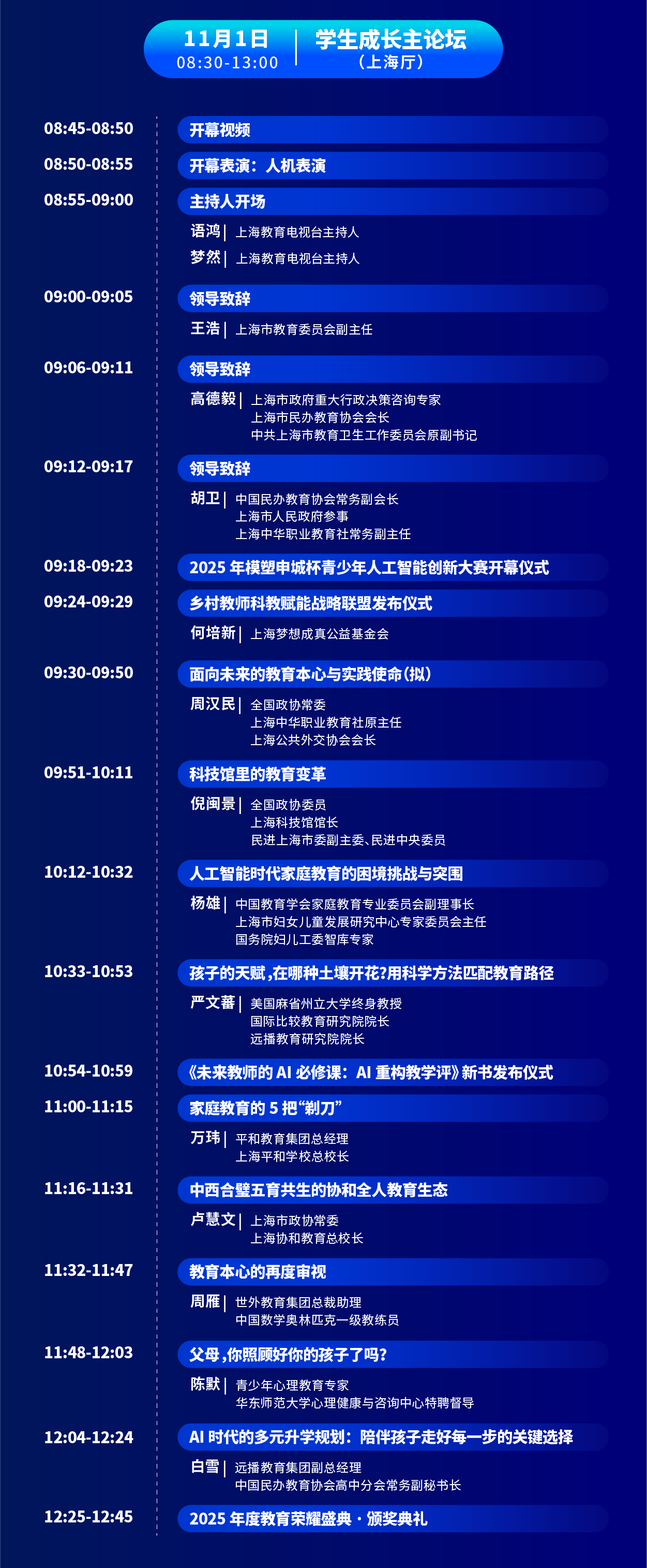 在數智賦能與教育創新深度融合的時代背景下,AI正以前所未有的速度重塑全球競爭格局與人才培養模式。論壇匯聚來自國家教育決策單位領導、高校學術前沿與人工智能研究領域的權威嘉賓,深入解析“數智”與“創新”的內在關聯與協同機制,探討技術變革下人才核心素養的重構路徑。通過主旨演講、前沿對話與學生圓桌等多元形式,共同思考在充滿不確定性的成長環境中,教育者與家長如何拓展教育邊界、革新教育認知,啟迪青年在全球視野下實現全面發展與自我成長。