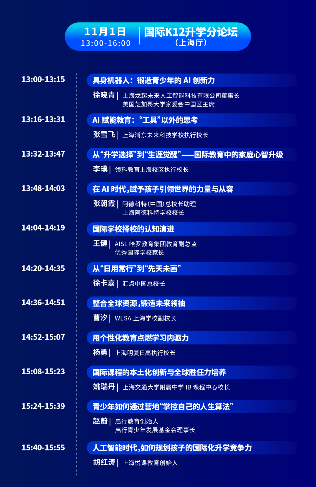 第八屆IEIC國際教育創新大會現場將匯聚全球知名教育學者、專家及一線教育實踐者,共同探討未來教育的發展路徑。議題涵蓋AI數智賦能、全人教育發展、多元文化融合、孩子學業規劃與身心健康等核心領域,為學生構建兼具學術深度與人文關懷的全方位成長藍圖。本屆大會將全天同步推出9大主題論壇,聚焦國際教育前沿趨勢與科技賦能實踐,解鎖教育的新維度與新可能。