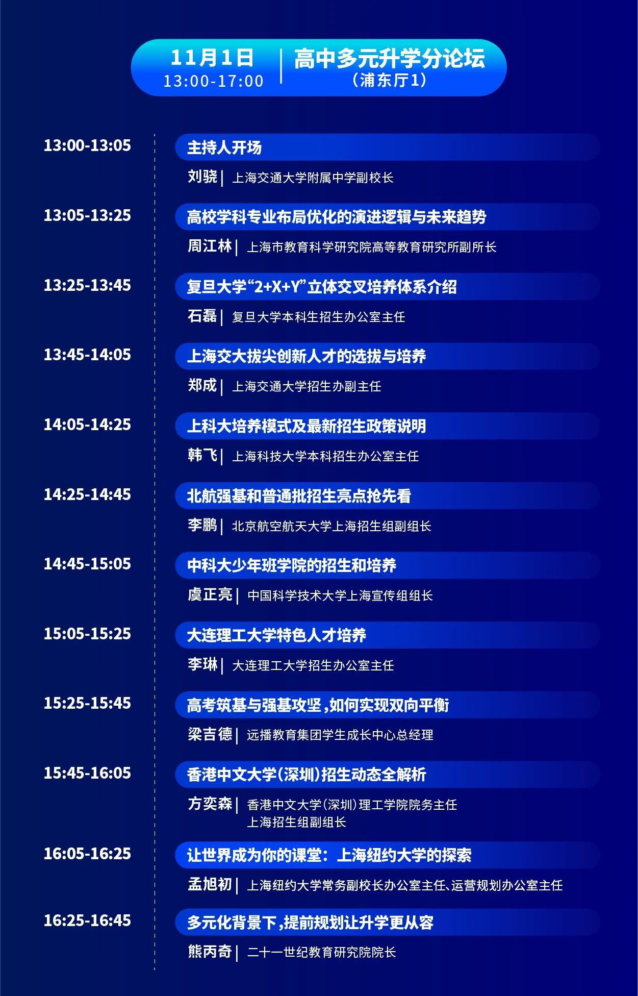 高中教育是鏈接基礎教育與高等教育的樞紐階段。本論壇助力科學規劃高中三年黃金節點,系統梳理國內多元錄取路徑——包括強基計劃、綜合評價、提前批次、普通批次,以及主流留學國家/地區的教育選拔等不同通道的申請策略。同時,論壇將深入解讀國內高水平大學與新型院校的教育創新路徑,拆解高等學府的招生動態、人才培養理念及成功案例,揭秘創新人才的培養邏輯,為學子提供清晰可行的發展藍圖。