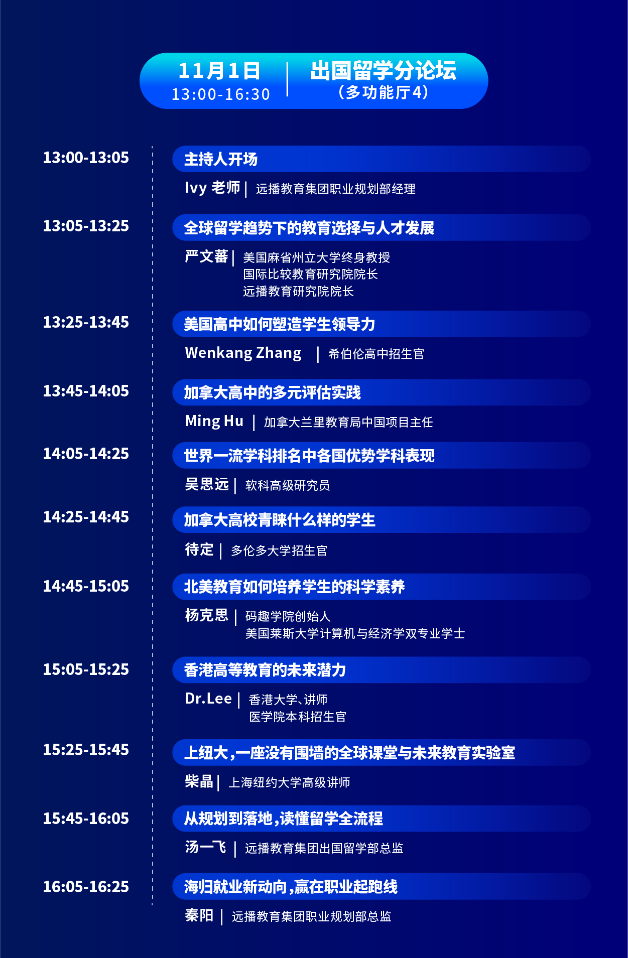 在數智時代,全球教育與人才競爭格局正經歷深刻變革。本論壇聚焦海外留學申請的最新趨勢,依托數據洞察與解析,系統構建海外名校申請的核心競爭力;同時深入探討職業發展規劃等關鍵議題,幫助學子在跨文化環境中提升綜合素養與創新能力。我們致力于為遠赴重洋的求學者點亮學術與人生的航標,啟迪其在全球視野下實現自我探索與長遠成長。