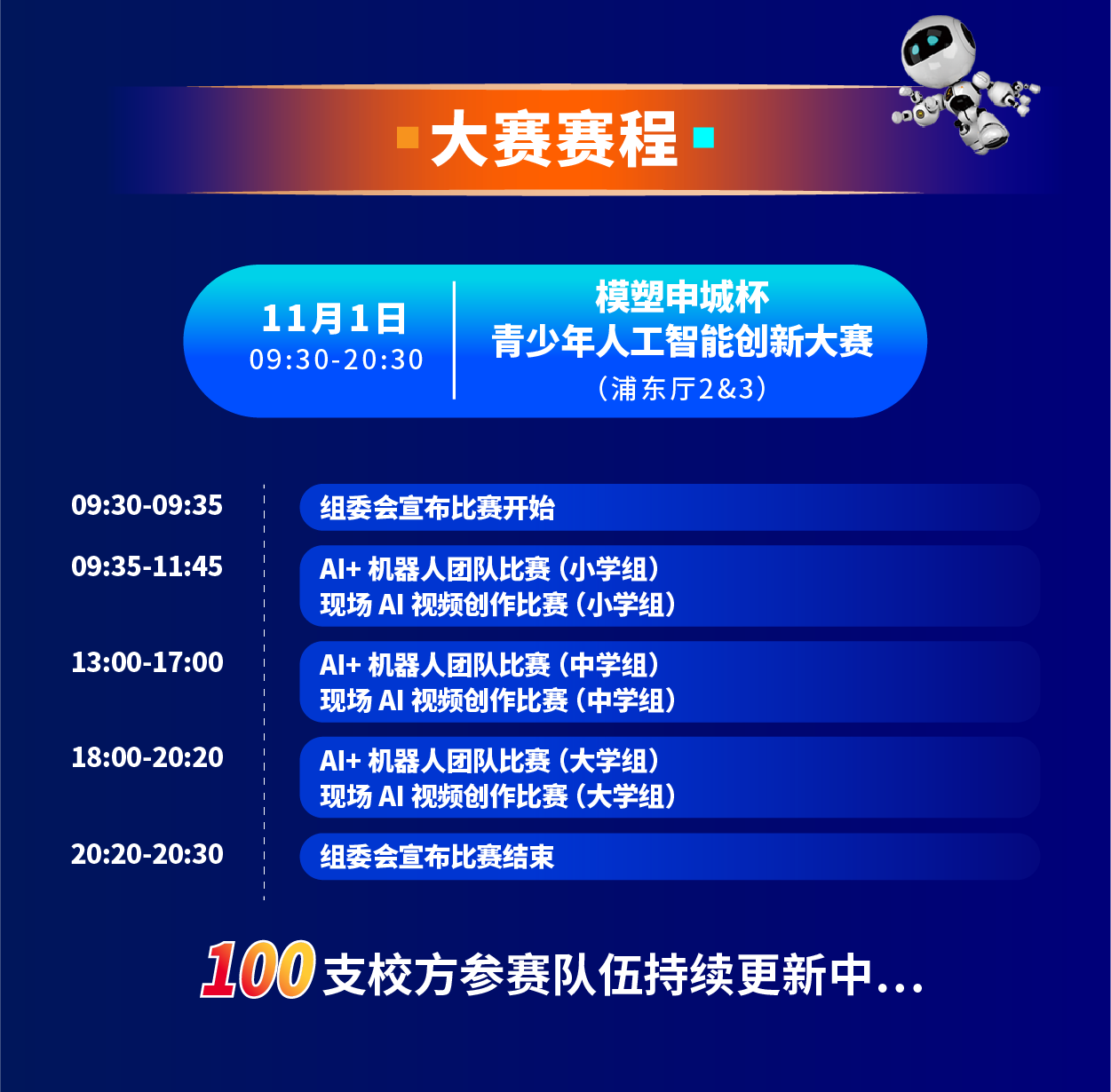 大會當天同步舉辦《2025年“模塑申城杯”青少年人工智能創新大賽》。大賽覆蓋小初高、大學全年齡段,旨在推進“人工智能+教育”的落地應用,引導學生探索未來科技,創造教育產業新生態與新機遇。參賽選手將現場挑戰未來主義命題“移動的AI機器人”,聚焦人工智能在動態環境中的自主決策能力,探索機器智能與人類文明的共生關系,展現科技創新與教育融合的無限可能。