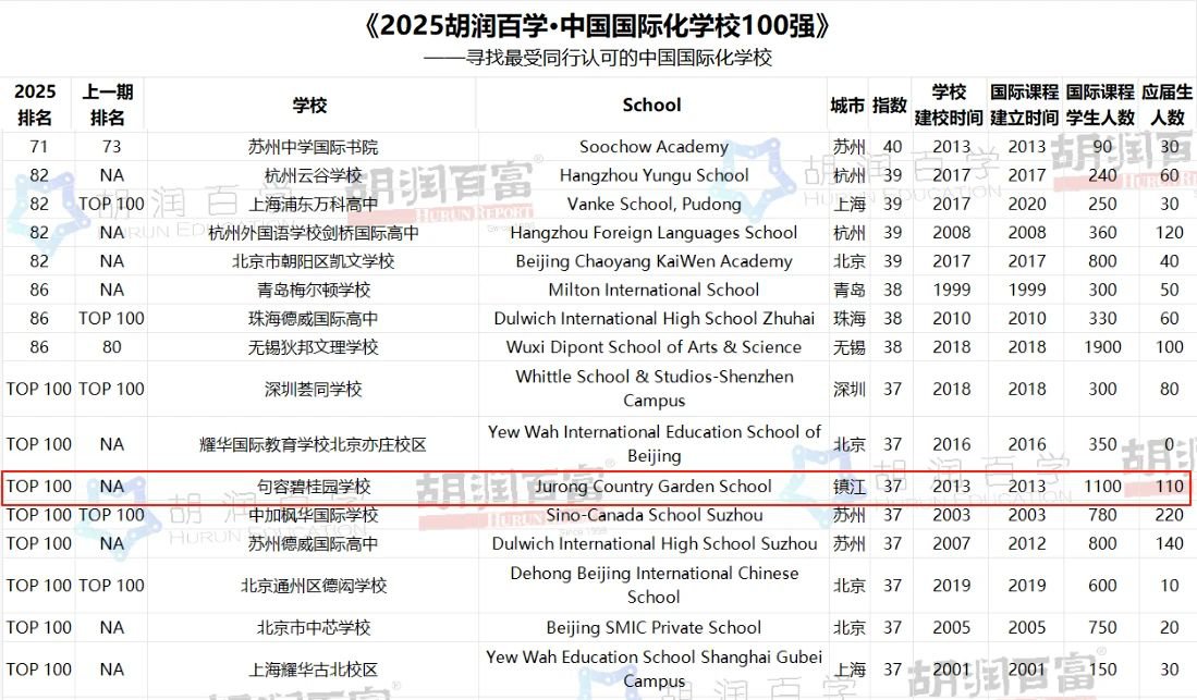 2025胡潤百學(xué)·中國國際化學(xué)校top100
