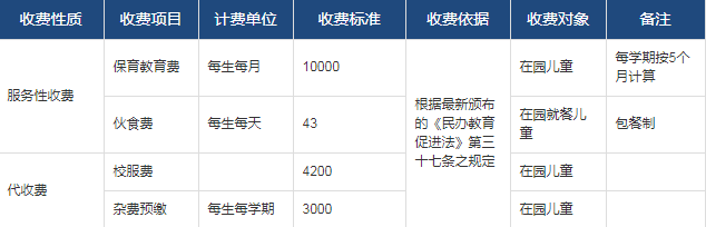 威雅國際幼兒園收費公示表