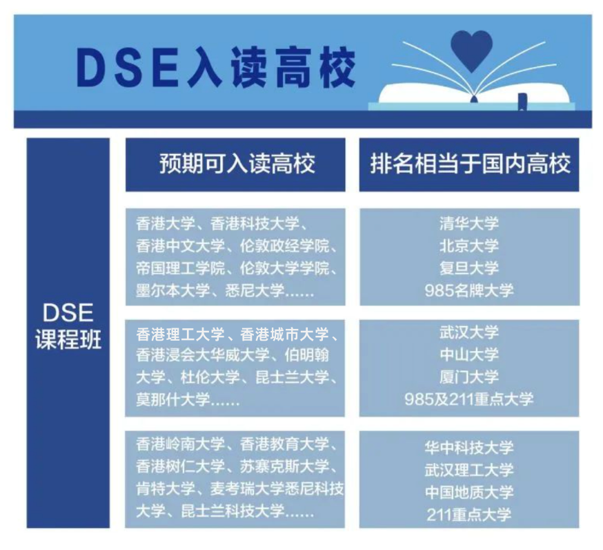 DSE(DIPLOMA OF SECONDARY EDUCATION)即“香港中學文憑試卷(香港高考)”由香港考評局統一組織考試,全球唯一可以用中文作答的國際考試,被譽為“中國人自己的國際課程”。