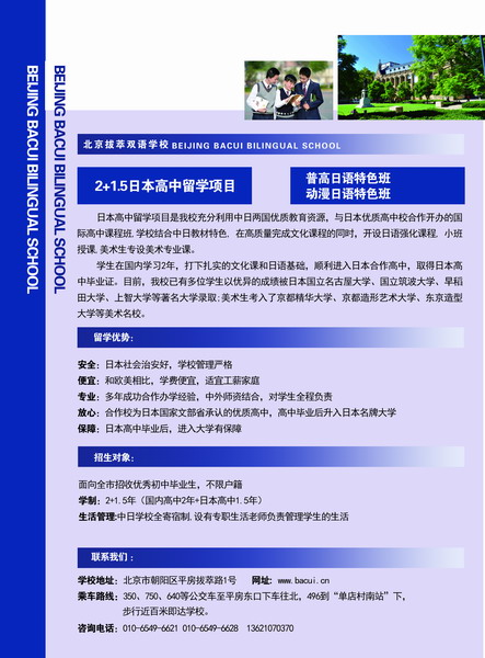 北京拔萃雙語學(xué)校日本高中留學(xué)項(xiàng)目是我校充分利用中日兩國優(yōu)...