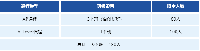 AP課程(2009年開辦):12屆畢業生100%被世界頂尖大學錄取,涵蓋美、英、加、澳、新加坡、中國香港等地區。