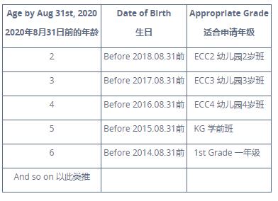 全體學(xué)生需適齡入學(xué)。申請1年級的學(xué)生需在入學(xué)年份的8月31日(含)前滿6周歲。