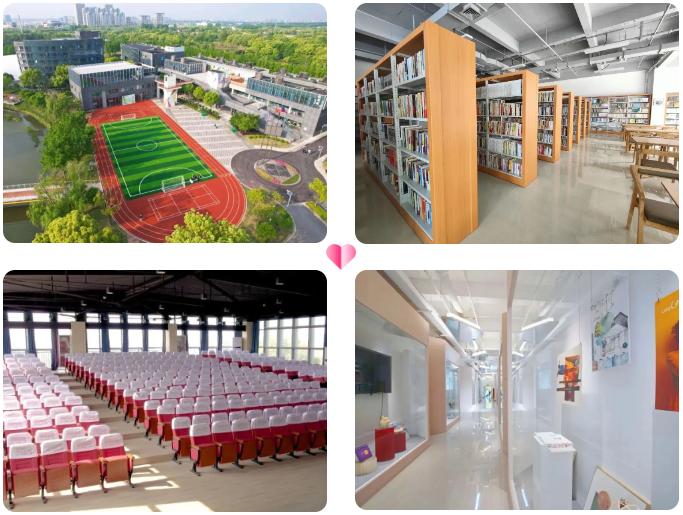 學校環境優美,設施一流,包含圖書館、物理實驗室、化學實驗室、多功能廳、美術工作室、攝影工作室、戲劇表演室、大禮堂、運動氣膜館、學生活動中心、戶外運動場、籃球場、網球場、餐廳、超市等,學習和生活設施一應俱全。