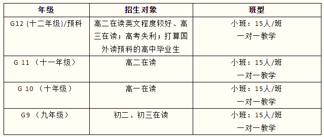 *適合學(xué)生類別:9-12年級(jí),想以國(guó)際生身份申請(qǐng)世界名校學(xué)生;高考成績(jī)不理想或不想?yún)⒓痈呖紝W(xué)生;無雅思或托福成績(jī)想要直錄的學(xué)生;沖刺名校,想獲取保錄名額的學(xué)生;不想讀本科預(yù)科或者橋梁課程的學(xué)生