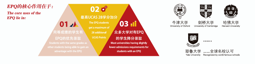 EPQ(Extended Project Qualification)項(xiàng)目,這是一項(xiàng)英國教育部和高等教育招生服務(wù)中心(UCAS)強(qiáng)烈推薦的研究性學(xué)習(xí)認(rèn)證項(xiàng)目。學(xué)生通過完成課題,最終提交論文+過程日志+答辯來獲得最后分?jǐn)?shù)。