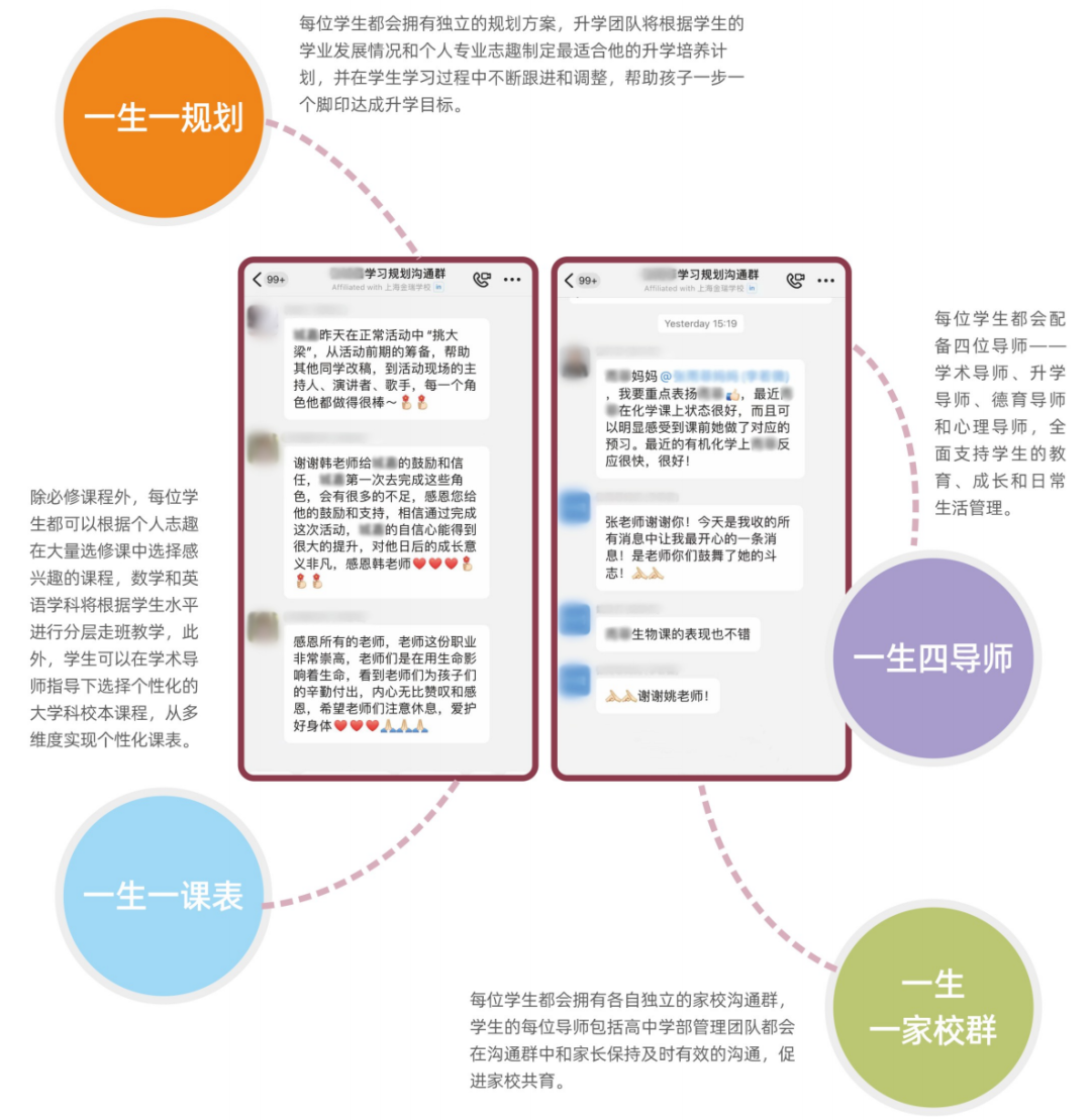 金瑞學(xué)校高中部是精英化教學(xué),擁有一套獨(dú)特的培養(yǎng)模式,叫“一生一規(guī)劃”“一生一課表”“一生四導(dǎo)師”“一生一群組”。