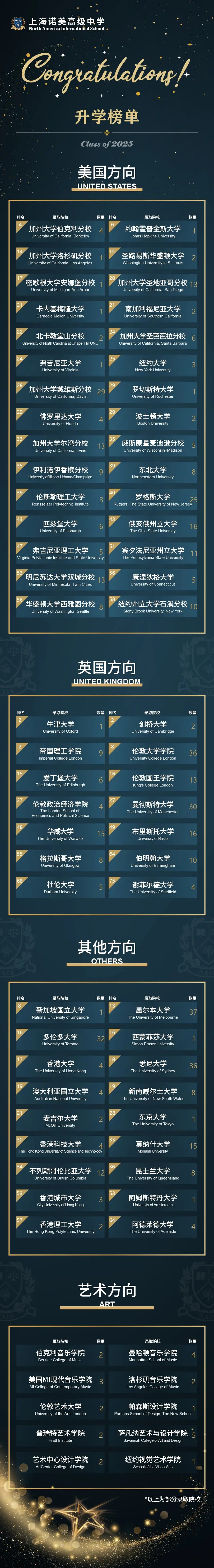 上海諾美學校2025屆畢業生再次以牛津、劍橋雙錄取的強勢開局交出了令人矚目的升學答卷——87%的學生成功躋身全球/全美Top30院校,97%收獲全球/全美Top50錄取,并且連續四年保持100%全球/全美Top100院校錄取率的輝煌戰績!更令人振奮的是,本屆畢業生累計獲得大學獎學金突破1300萬元!!