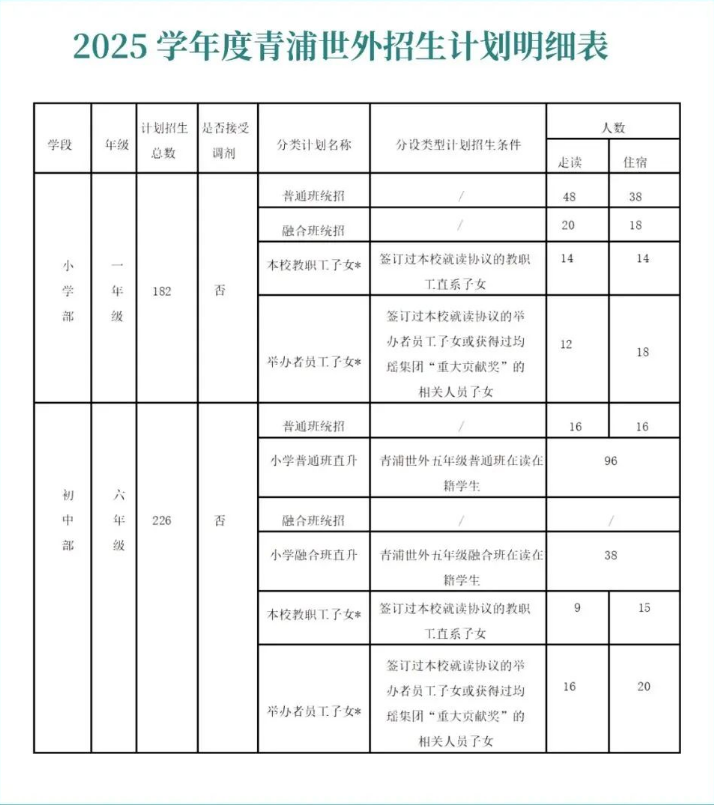 青浦世外目前分小學部(普通班、融合班)與初中部(普通班、融合班)。2025年將繼續招收小學一年級(普通班、融合班)學生和初中六年級(普通班、融合班)學生。