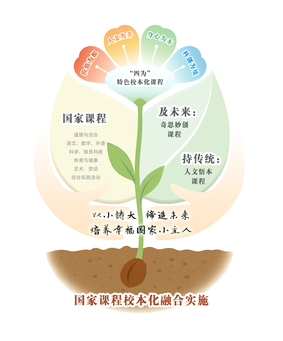 宋校徐匯實驗附小秉承宋慶齡先生“把最寶貴的東西給予兒童”的教育思想,致力于培養有理想、有本領、有擔當的“幸福國家小主人”。學校在確保完成國家義務教育課程方案基礎上,將“有利于兒童發展”作為基本理念,將“快樂生活、快樂學習、快樂成長”貫穿始終,以“尊重與要求和諧統一、兒童與社會共發展、人文與科學相結合、中國與世界相交融”為原則,落實“人工智能”地方課程,做好“持傳統:人文悟本”和“及未來:奇思妙創”的國家課程校本化融合實施,并在其中融入適合兒童發展的人工智能學習;同時開設“人文為養、科創為境、價值為根、身心為本”的“四為”特色化校本課程,努力打造兼具中國根基與國際視野、科技創新與人文情懷的中國世界學校。