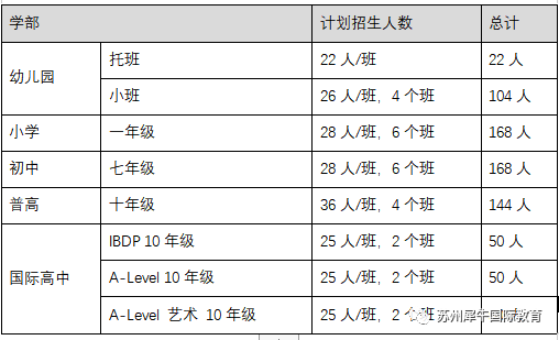 2023年秋季招生計劃:托班22人、小班104人、小學168人、初中168人、IBDP 項目50人、Alevel高中課程50人、A-Level藝術課程 50人、直通車(初二、初三)50人