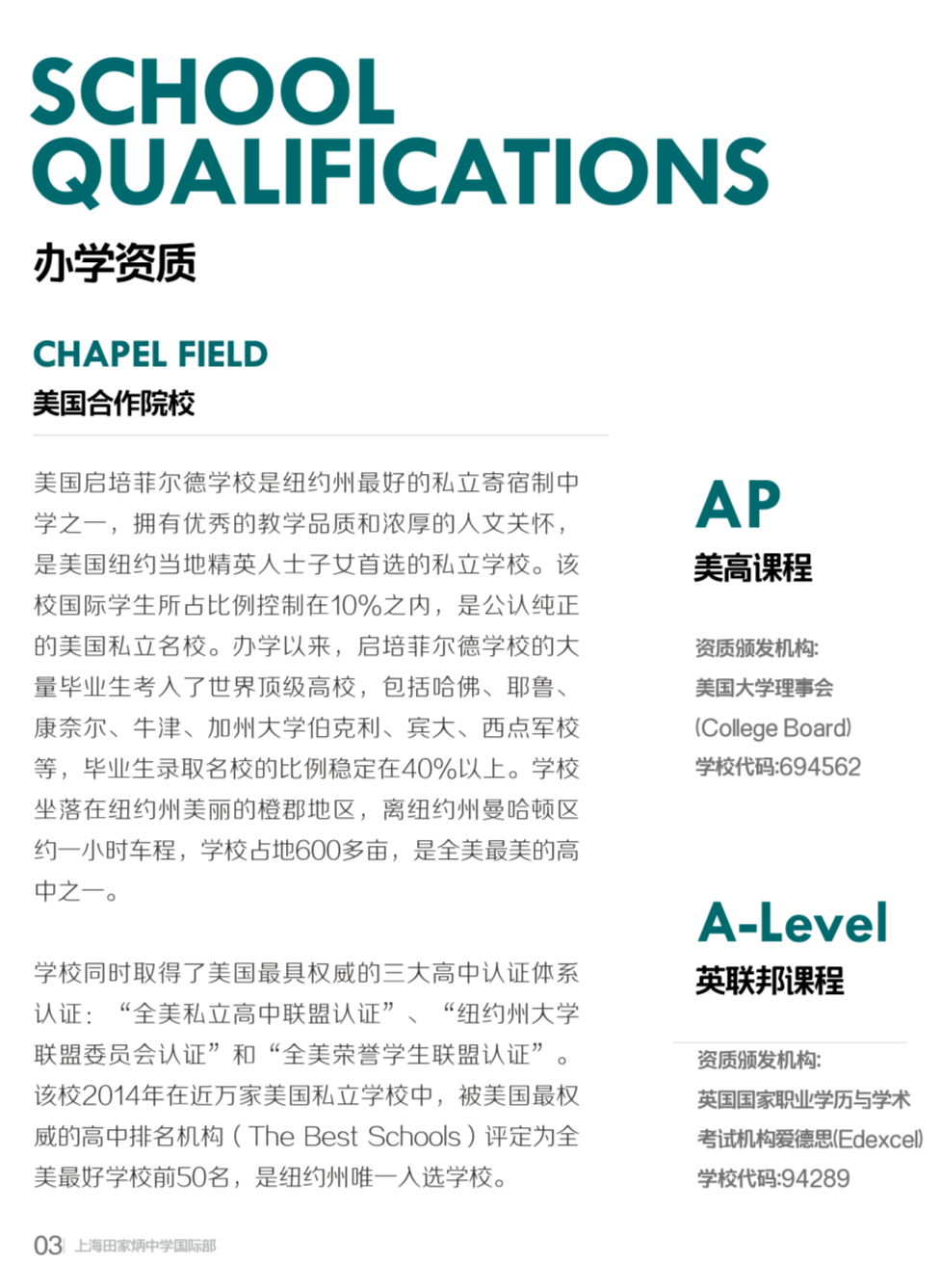 上海田家炳中學自2006年起開辦國際課程,教授美國中學課程和英...