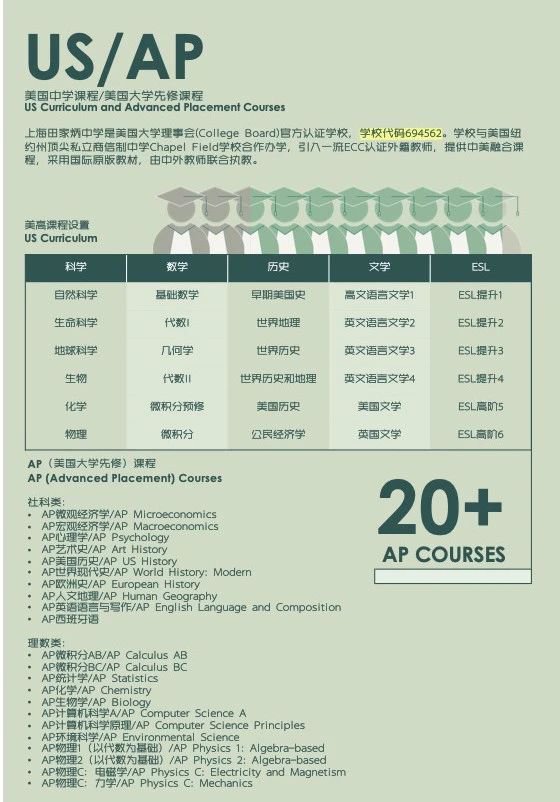 上海田家炳中學國際部引進美高/AP課程以及A-Level課程,依托香港...