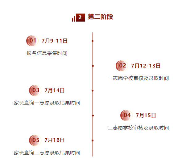 4.家長查詢一志愿錄取結果時間:7月14日(未被一志愿學校錄取的學生,請家長關注二志愿學校的審核通知)