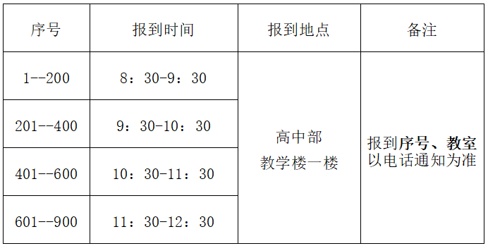 (為提高效率,實(shí)行錯(cuò)時(shí)錯(cuò)峰報(bào)到,請(qǐng)按照電話通知時(shí)間準(zhǔn)時(shí)到校)