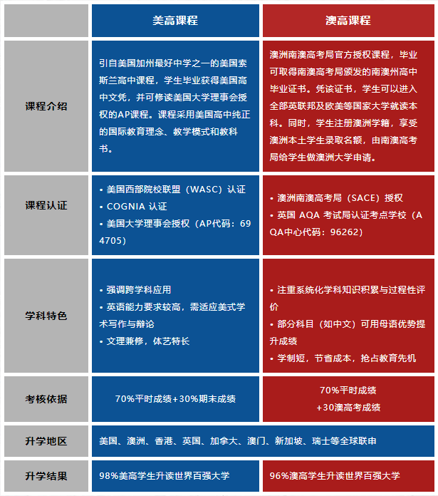 注:美高與澳高課程并無優(yōu)劣之分,核心在于根據(jù)學(xué)生特點與升學(xué)目標(biāo)精準(zhǔn)匹配。在國際部,我們通過1V1升學(xué)測評、學(xué)科能力分析與興趣探索(霍蘭德測試),為每位學(xué)生規(guī)劃個性化路徑,確保學(xué)生在國際教育賽道中發(fā)揮最大潛能。