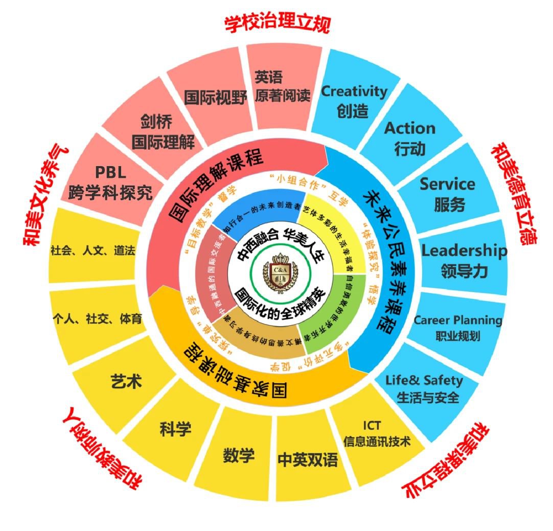 中西融合課程,國際文憑認證。國家課程,夯實基礎,根深中華;國際課程,多元個性,美綻世界。