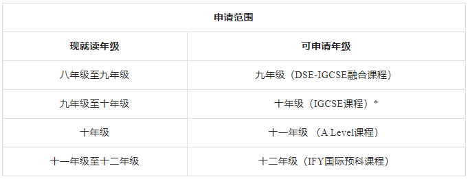 *申請十年級:在讀IG學生需現在學校學習9年級IGCSE至少六門科目,包括中英數及三個選修課;中考學生需在模考/中考獲得565分以上的成績。請在報名表的”學習歷程”上傳提供相關學校官方證明。