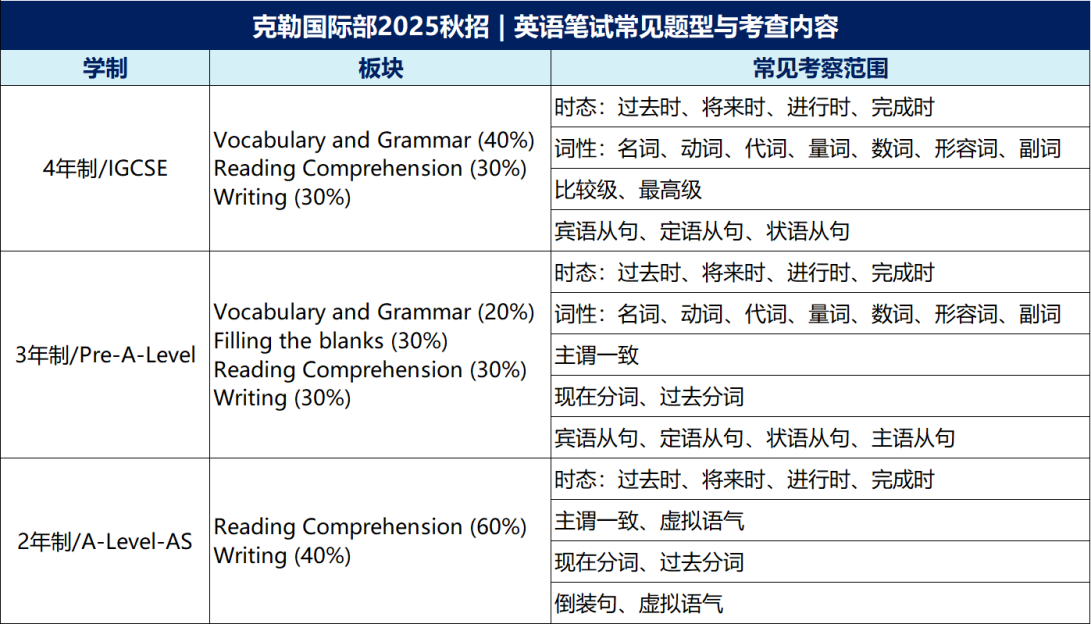 2025克勒國際部秋季招生,將對學生進行綜合能力測試評估后,擇優錄取。