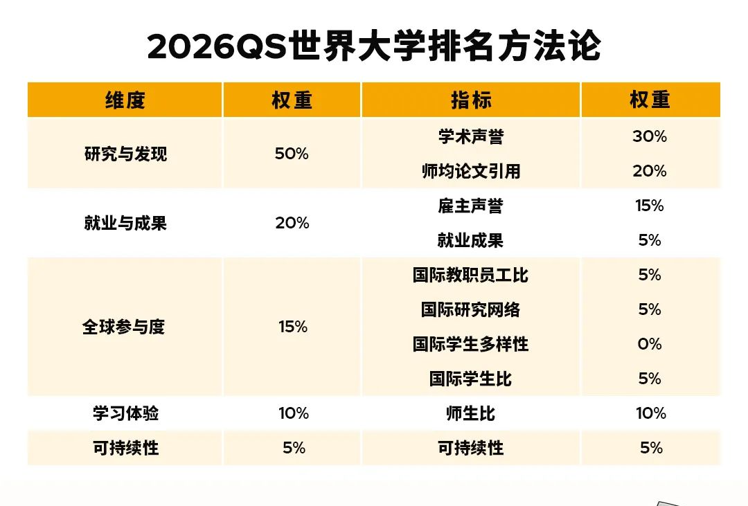 但小編仔細看了看發現,ISD這一項指標作為非加權指標(占比0%),暫不影響總分,2026最終的排名指標和去年相差不大: