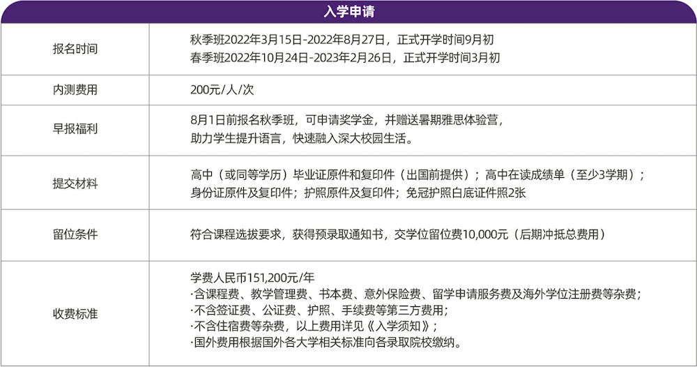 國內1年,課程考核合格后轉至海外大一繼續攻讀本科學位以及碩士學位。